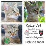 Geschichte: Veli wurde im Rahmen einer Kastrationsaktion eingefangen und kastriert. Die kleine Veli ist sehr menschenbezogen und lieb. Somit hatten wir Angst